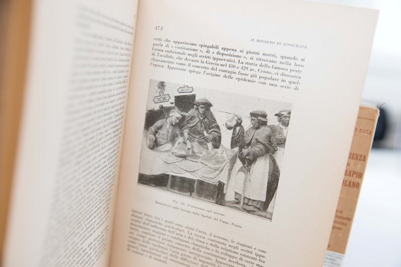 Tra le cinquecentine figurano gli Hippocratis Aphorismi […] del padre della Medicina Ippocrate (460 a.C-377 a.C.), la Historia naturalis di Plinio il Vecchio (23 d.C.- 79 d.C.), un capolavoro enciclopedico molto conosciuto nel Medioevo e nel Rinascimento e fonte inesauribile per lo studio delle conoscenze scientifiche del mondo antico, e i Aetii Medici Graeci contractae ex ueteribus medicinae sermones 16. […] del medico bizantino Aezio di Amida (seconda metà del V sec. - prima metà del VI sec.).