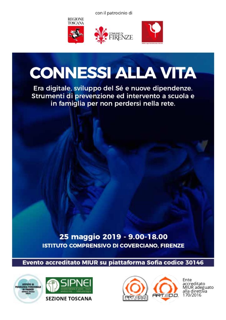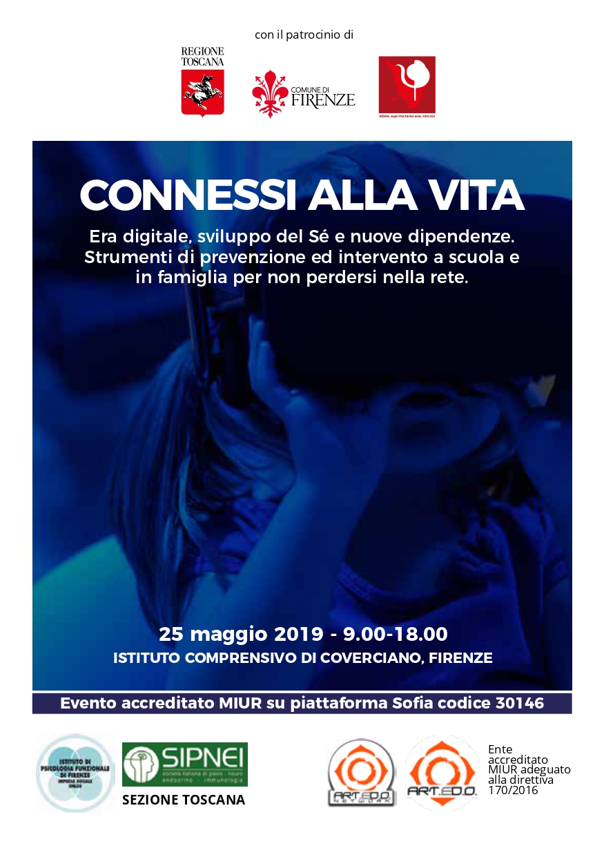 'Connessi alla vita - Era digitale, sviluppo del sé e nuove dipendenze. Strumenti di prevenzione e intervento a scuola e in famiglia per non perdersi nella rete' è l'evento in cui illustri relatori affronteranno un tema molto attuale e sentito, multidisciplinare, con ingresso gratuito e possibilità di crediti ECM e accreditato dal MIUR.