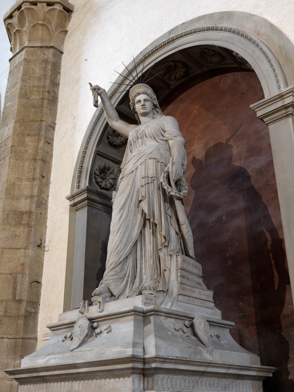 C’è un percorso fatto di idee e di arte che da Firenze e da Santa Croce porta direttamente agli Stati Uniti e a New York. Di questo percorso, dove si intrecciano storie di uomini e popoli alla conquista di libertà e democrazia, sono simbolo e protagoniste due Sisters in liberty. Si tratta dell’austera Statua della Libertà che illumina il mondo di Frederic Bartholdi, che dal 1886 - giunta in dono della Francia - domina la baia di Manhattan, e l’elegante Libertà della Poesia di Pio Fedi, collocata nella basilica nel 1883 come monumento per il patriota risorgimentale Giovanni Battista Niccolini. Tanto simili nel portamento e nei particolari che ancora è aperto il confronto, tra gli addetti ai lavori, se a ispirare Bartholdi sia stata proprio l’opera di Fedi, ammirata durante la sua permanenza a Firenze.