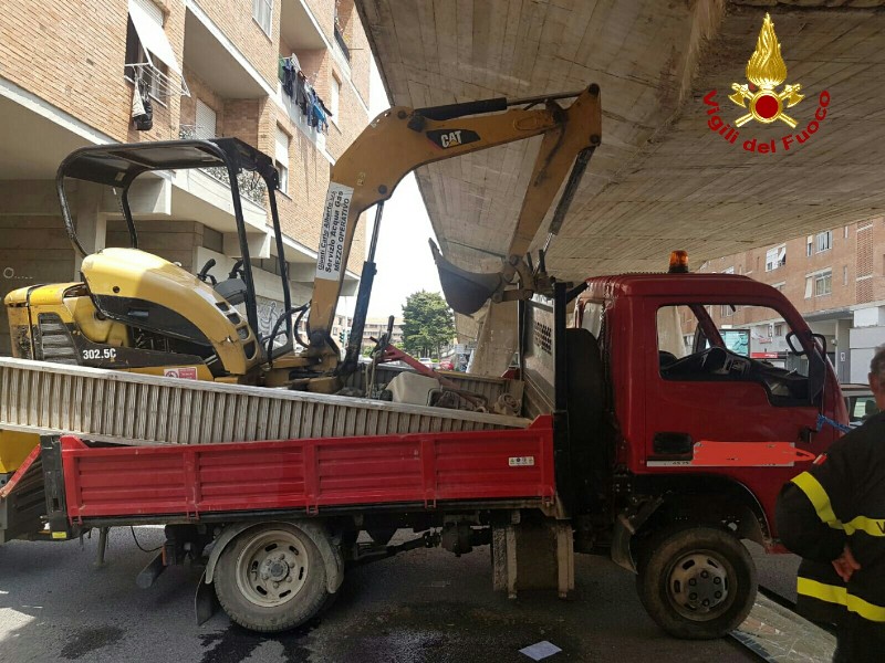 Un camion che trasportava un mezzo meccanico con pala è rimasto incastrato sotto un cavalcavia nel quartiere La Rosa di Livorno nella giornata di oggi, sabato 25 maggio. I vigili del fuoco del comando livornese sono intervenuti per la messa in sicurezza, mentre i sanitari inviati dal 118 hanno trasferito l'autista in pronto soccorso. La polizia municipale si è occupata dei rilievi.