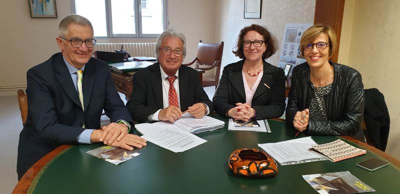 Silvano Guerrini con il sindaco di Amboise Christian Guyon, il consigliere comunale Evelyne Launay e l'assessore alla cultura Valèrie Collet