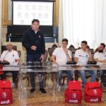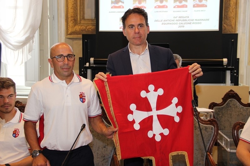 Si rinnova per Pisa l’appuntamento con la Regata delle Antiche Repubbliche Marinare che per la 64esima edizione sarà ospitata a Venezia venerdì 31 maggio e sabato 1 giugno prossimi. Questa mattina in Sala Baleari di Palazzo Gambacorti è stato presentato l’equipaggio del Galeone Rosso alla presenza del sindaco di Pisa, Michele Conti, che come tradizione ha consegnato al timoniere Gabriele Ciulli la bandiera del Galeone Rosso