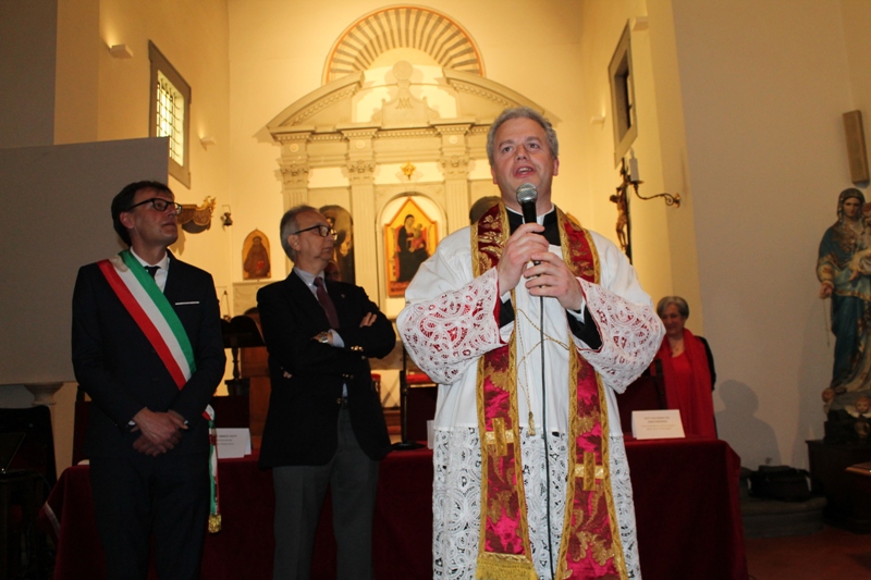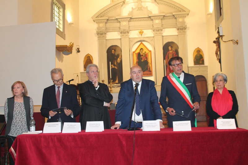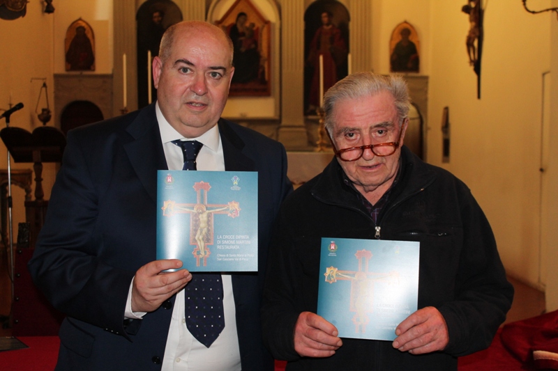 Questa Croce è stata presente nella Chiesa fin dal XVIII secolo. Croce di grande valore artistico, croce di devozione e di preghiera, di sofferenza collettiva e personale. Il saluto del sindaco uscente Massimiliano Pescini ha posto in evidenza come San Casciano sia un territorio ricco di evidenze storico artistiche e come la Croce di Simone Martini sia opera pregevole che la comunità sancascianese tiene in gran conto.