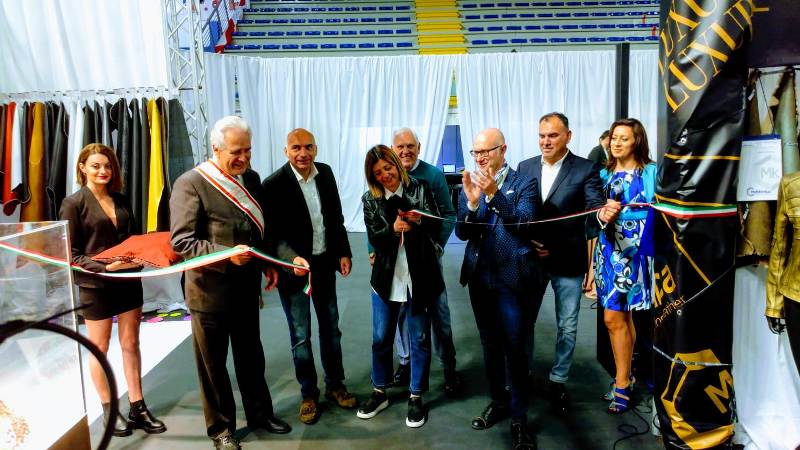 In un PalaParenti trasformato in showroom, il sindaco Giulia Deidda - assieme a Gabriele Toti di Castelfranco, Vittorio Gabbanini di San Miniato, Alessio Spinelli di Fucecchio e il presidente del Consiglio regionale Eugenio Giani, il presidente Associazione Conciatori Alessandro Francioni - ha tagliato il nastro di Material Preview.