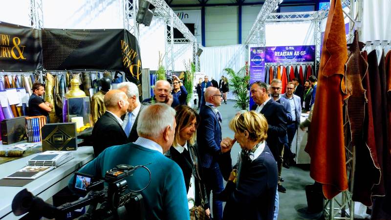 In un PalaParenti trasformato in showroom, il sindaco Giulia Deidda - assieme a Gabriele Toti di Castelfranco, Vittorio Gabbanini di San Miniato, Alessio Spinelli di Fucecchio e il presidente del Consiglio regionale Eugenio Giani, il presidente Associazione Conciatori Alessandro Francioni - ha tagliato il nastro di Material Preview.