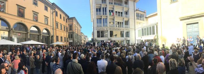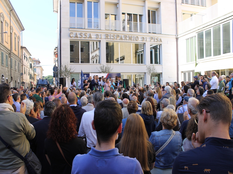 "È stupendo vedere una piazza così piena che respira voglia di libertà. È stata una primavera di vento e questo sarà il vento che spazzerà via l’aria pesante che c’è in Comune". "È l’ora di dire basta a questo sistema - ha continuato Bagnoli - abbiamo fatto una campagna elettorale in mezzo alla gente e questa piazza piena ci chiede il cambiamento e di rimettere al centro delle politiche i cittadini di Pontedera. È l’ora di ripartire dalle piccole cose a differenza del candidato del Pd Matteo Franconi che in questa campagna elettorale ha promesso di tutto e di più ma ci lascia un buco di 70mln di euro in bilancio. In questa settimana correremo ancora più forte e andremo a prenderci gli ultimi voti che ci mancano per liberare definitivamente Pontedera".