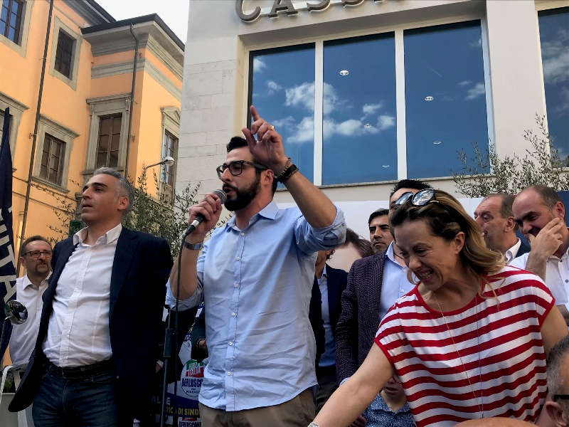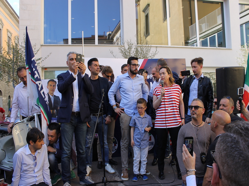 Infine ha esortato i partecipanti scesi in piazza e la cittadinanza di Pontedera in vista del ballottaggio, con parole di sostegno al partito e al candidato Bagnoli: "Quando voi andate a votare domenica non state votando solo una persona capace ma votate per difendere quello che siete. Non ci votate per interesse: se ci votate perché pensate che vi troviamo un posto di lavoro allora votate il PD, questo lo sanno fare loro. Non ci votate per odio, se votate per odio, perché volete distruggere tutto, perché volete che non rimanga più niente allora votate i cinque stelle perché su questo loro sono cintura nera. Ma votate per Matteo Bagnoli, votate per noi, se quello per cui andate a votare è amore. Amore per la vostra città, famiglia, attività, futuro, figli, allora scegliete Matteo bagnoli".