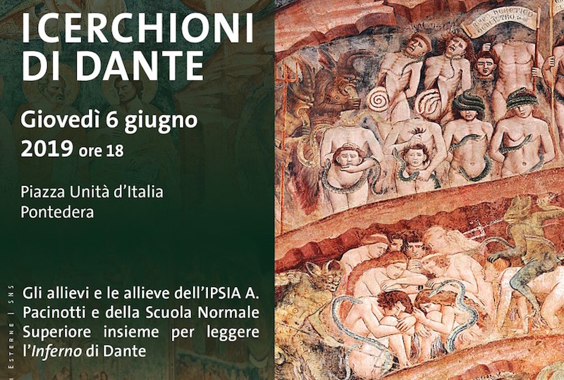 Allievi e allieve del Professionale e della Normale per la prima volta insieme per leggere l’Inferno di Dante. Evento eccezionale, certo, ma non estemporaneo. Perché l’esibizione di giovedì 6 giugno alle ore 18 in piazza Unità d’Italia (alla stazione) a Pontedera, non nasce per caso, ma è il risultato e il frutto di mesi e mesi di lavoro portato avanti da entrambe le prestigiose istituzioni scolastiche. Nel corso dell’anno scolastico che sta per concludersi, gli allievi della Normale di Pisa a più riprese hanno tenuto lezioni di… lettura e di formazione nell’aula magna della scuola di Pontedera, coadiuvati dagli insegnanti della scuola di via Salcioli.