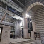 La cattedrale di Santa Maria Assunta a Volterra sorge in piazza San Giovanni, accanto all’antico ospedale cittadino e al Battistero. Si tratta di uno degli edifici simbolo della Volterra medievale, tra i massimi esempi di romanico pisano, costruito addirittura prima del Palazzo dei Priori, noto come il più antico palazzo civico toscano. Consacrata da papa Callisto il 20 maggio 1120, la cattedrale ospita preziose opere d’arte, sia antiche che moderne e contemporanee. Fra queste, la deposizione lignea policroma del 1228, il soffitto a cassettoni intagliato e dorato con i santi protettori della città e il rosone in vetro istoriato, realizzato dal professor Mino Rosi nel 1989 in occasione della visita del pontefice Giovanni Paolo II. Proprio in vista delle celebrazioni per i 900 anni dalla consacrazione, la diocesi di Volterra ha deciso l’avvio dei lavori, cadenzati in più fasi: oltre al restauro delle coperture, della facciata della navata laterale destra, della Cappella dell’Addolorata e del Santissimo Nome di Gesù, il progetto prevede la messa in sicurezza degli impianti di luce e riscaldamento e del soffitto ligneo, il restauro degli intonaci, delle colonne e dei paramenti murari esterni, gravemente corrosi dagli agenti atmosferici.