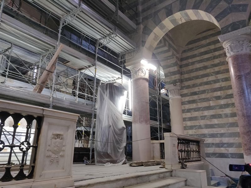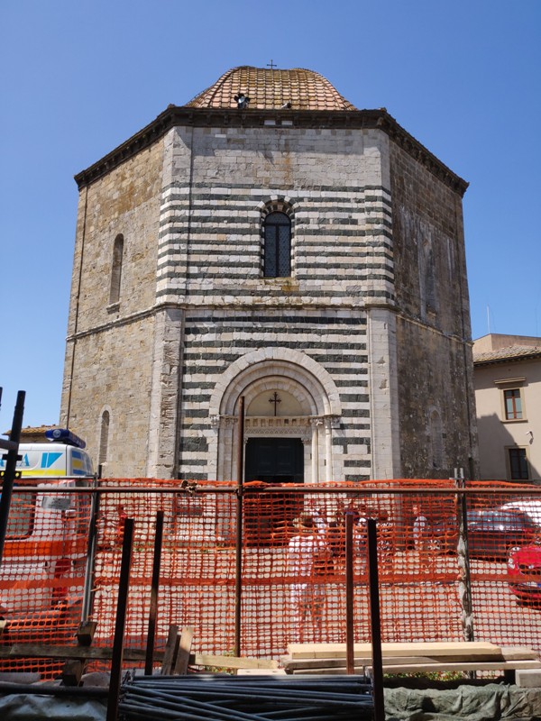 La cattedrale di Santa Maria Assunta a Volterra sorge in piazza San Giovanni, accanto all’antico ospedale cittadino e al Battistero. Si tratta di uno degli edifici simbolo della Volterra medievale, tra i massimi esempi di romanico pisano, costruito addirittura prima del Palazzo dei Priori, noto come il più antico palazzo civico toscano. Consacrata da papa Callisto il 20 maggio 1120, la cattedrale ospita preziose opere d’arte, sia antiche che moderne e contemporanee. Fra queste, la deposizione lignea policroma del 1228, il soffitto a cassettoni intagliato e dorato con i santi protettori della città e il rosone in vetro istoriato, realizzato dal professor Mino Rosi nel 1989 in occasione della visita del pontefice Giovanni Paolo II. Proprio in vista delle celebrazioni per i 900 anni dalla consacrazione, la diocesi di Volterra ha deciso l’avvio dei lavori, cadenzati in più fasi: oltre al restauro delle coperture, della facciata della navata laterale destra, della Cappella dell’Addolorata e del Santissimo Nome di Gesù, il progetto prevede la messa in sicurezza degli impianti di luce e riscaldamento e del soffitto ligneo, il restauro degli intonaci, delle colonne e dei paramenti murari esterni, gravemente corrosi dagli agenti atmosferici.