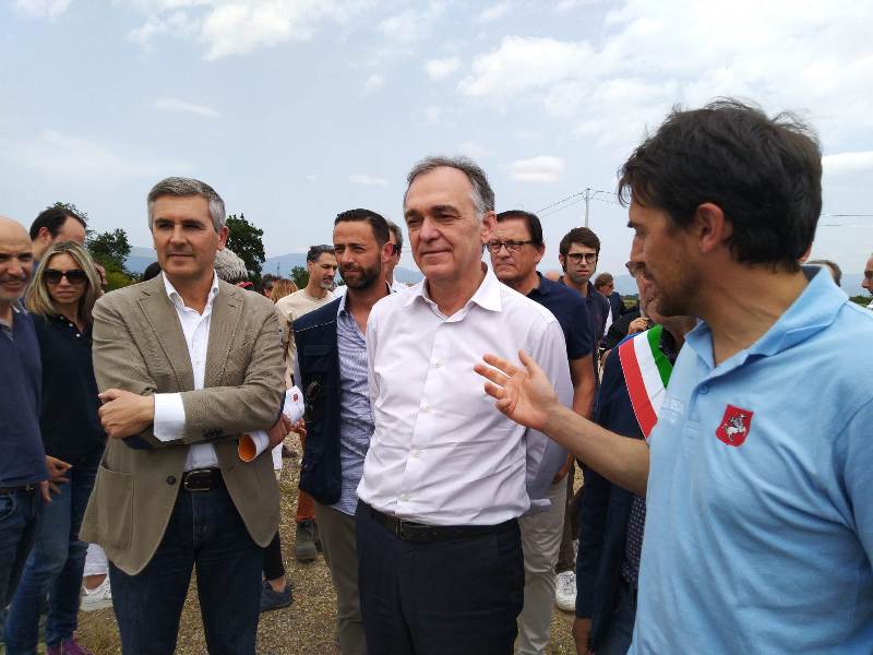 - "Due anni fa venni qui per inaugurare il primo lotto e promisi che sarei tornato al termine del secondo. Ecco, oggi sono qui per questa felice circostanza e ho concordato che prima della fine del mio mandato tornerò per posare la prima pietra del terzo lotto. Si tratta di opere importanti per la messa in sicurezza del territorio dal rischio idrogeologico. Ne siamo cosi convinti che dal 2012 ad oggi siamo riusciti ad investire ogni anno dagli 80 ai 100 milioni di euro a questo scopo, in ogni zona della Toscana, tenendo il passo del contadino: costante, tenace ed efficace".
