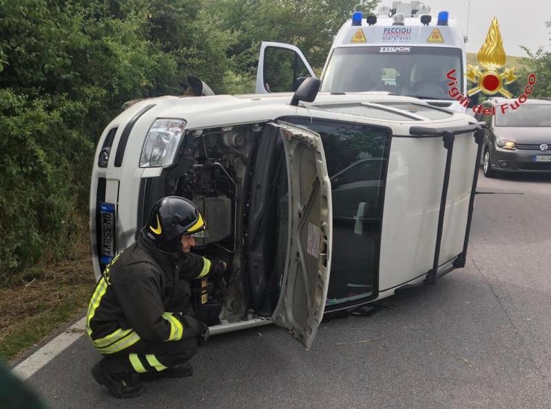 Una Fiat Panda con a bordo una donna e la nipote si è ribaltata sulla ss439 nei pressi di Lajatico alle 15.30. I vigili del fuoco del distaccamento di Saline hanno estratto la donna, mentre la piccola era già stata fatta uscire all'arrivo dei sanitari. La squadra inoltre provveduto a mettere in sicurezza il veicolo alimentato a metano nell’attesa del carro attrezzi. Sul posto i carabinieri della compagnia di San Miniato.