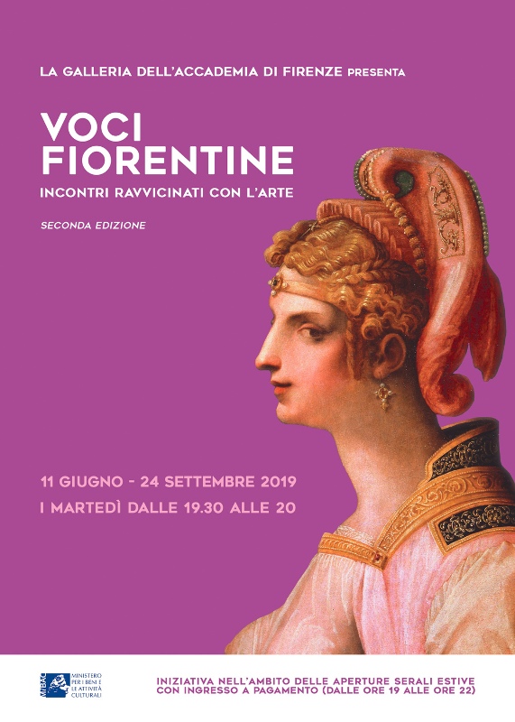La Galleria dell’Accademia di Firenze propone per l’estate 2019, dopo la fortunata serie dello scorso anno, un nuovo ciclo di incontri ravvicinati con l’arte: torna la rassegna Voci fiorentine e l’appuntamento è fissato al martedì sera, alle ore 19.30, in concomitanza con l’apertura serale straordinaria del museo, dalle ore 19.00 alle ore 22.00.