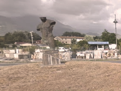 Beccato sul fatto mentre imbrattava l'opera di Roberto Santo 'Torso 175'. La scultura, un tuttotondo in bronzo, domina la rotonda tra l'intersezione di via Unità d'Italia e via Tonfano a Pietrasanta.