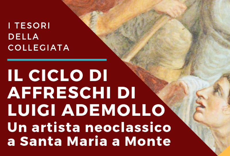 Il 14 Giugno la rassegna verrà inaugurata da una conferenza su uno degli innumerevoli tesori custoditi nella Collegiata di San Giovanni Evangelista: il ciclo di affreschi di Luigi Ademollo. Nato a Milano nel 1764, dal 1788 fu attivo anche a Firenze dove nel 1789 fu nominato Professore presso l'Accademia di Belle Arti. Contraddistinto da uno stile che sapeva attualizzare il gusto classico, l’Ademollo ornò chiese, palazzi, ville, in grandi e piccole città di tutta la Toscana, da Firenze (Cappella Palatina di Palazzo Pitti, Chiesa della Santissima Annunziata), a Lucca, passando da Pomarance, Lucignano, Monte San Savino e dunque Santa Maria a Monte, dove il 30 giugno 1823 stipulò un contratto “dovendosi adornare di figure ed ornati la Chiesa Collegiata”.