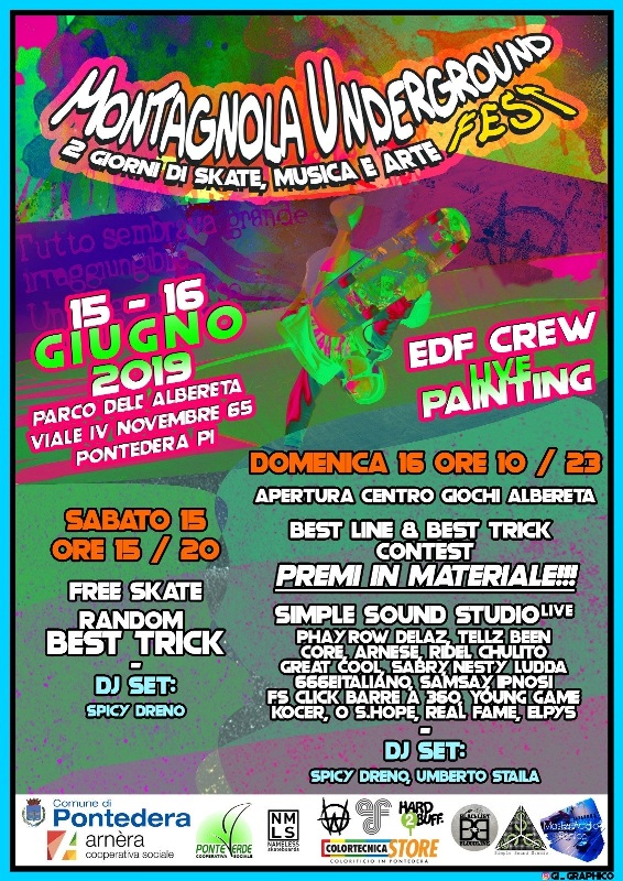 Nella splendida cornice del parco dell'Albereta, all'interno dell'area della Montagnola, dal pomeriggio di sabato 15 giugno e per tutta la giornata di domenica 16 avrà luogo una due giorni dedicata alla cultura underground dove musica, skate e spray art saranno protagonisti.