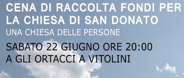Sabato 22 giugno alle ore 20.00, agli Ortacci a Vitolini, ci sarà una cena di raccolta fondi per la ristrutturazione della chiesa di San Donato in Greti-Vinci.