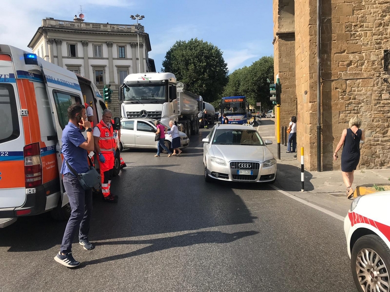 Pomeriggio di incidenti quello di oggi con molte ripercussioni sul traffico cittadino: alle ore 15.00 in via Aretina, prossimità Largo Cappuci, una Ford Fiesta condotta da una cinquantenne ha effettuato un sorpasso azzardato mentre era diretta verso il Girone. Durante il sorpasso infatti ha impattato contro un'utilitaria condotta da una fiorentina. Subito dopo l’urto la Fiesta ha ruotato su sé stessa andando anche ad urtare contro uno scooter con alla guida un 56enne. Il centauro e la 50enne sono rimasti feriti fortunatamente in modo lieve e sono stati trasportati in ospedale in codice giallo. Sul posto è intervenuta una pattuglia dell’autoreparto per i rilievi.
