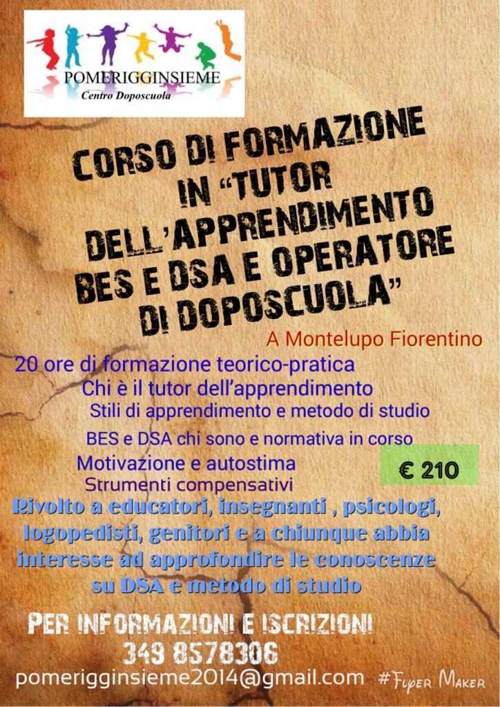 A grande richiesta, data l'altissima affluenza del primo corso iniziato poche settimane fa, la Pubblica Assistenza di Montelupo Fiorentino e il doposcuola Pomerigginsieme hanno deciso di riproporre il corso di formazione in “Tutor dell'apprendimento BES e DSA e operatore di doposcuola”.