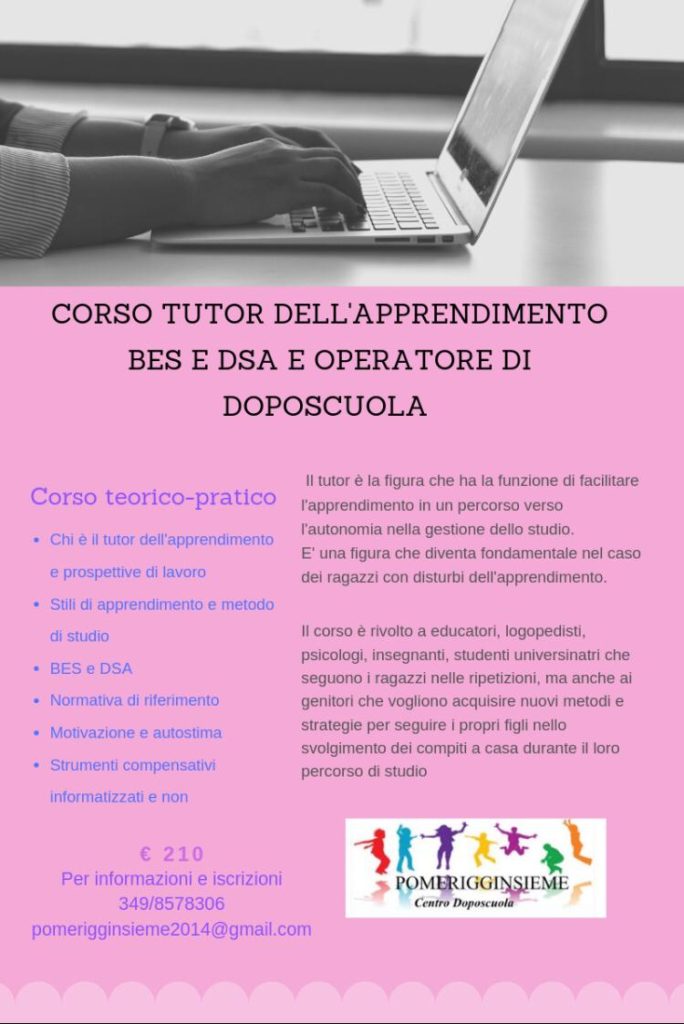 A grande richiesta, data l'altissima affluenza del primo corso iniziato poche settimane fa, la Pubblica Assistenza di Montelupo Fiorentino e il doposcuola Pomerigginsieme hanno deciso di riproporre il corso di formazione in “Tutor dell'apprendimento BES e DSA e operatore di doposcuola”.