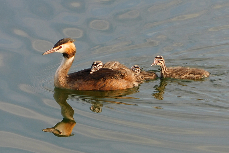 Quando sono ancora piccoli, lo Svasso maggiore li porta sul dorso, offrendo l’incredibile spettacolo di una barchetta di penne e piume con quattro o cinque passeggeri che sporgono solo le testoline in attesa dell’imbeccata.