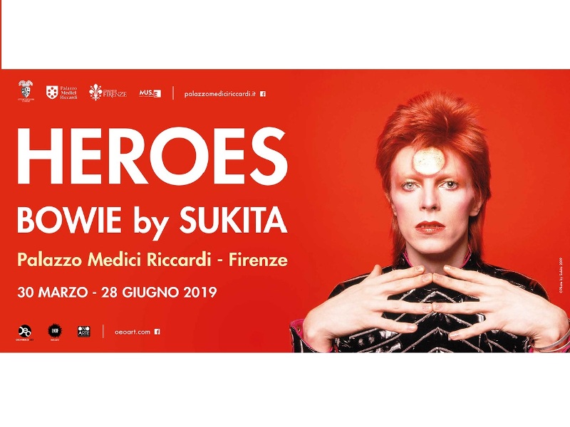 Nelle sale del piano terra del Palazzo dimora quattrocentesca della famiglia Medici, si possono ammirare non solo gli scatti iconici della copertina dell’album "Heroes", ma anche le fotografie storiche tratte dall’archivio personale di Sukita che raccontano un’amicizia iniziata negli anni Settanta. Il catalogo della mostra è edito da Oeo Firenze.