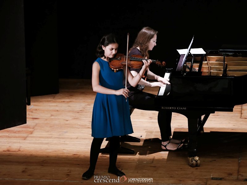 Quindicenne è anche la vincitrice del Premio Crescendo per la sezione pianoforte, Vera Cecino. Vera è il primo caso di due fratelli vincitori del concorso: nel 2016, infatti, fu il fratello maggiore Elia ad aggiudicarsi lo stesso prestigioso riconoscimento e ad esibirsi nella serata finale nel Salone dei Cinquecento.