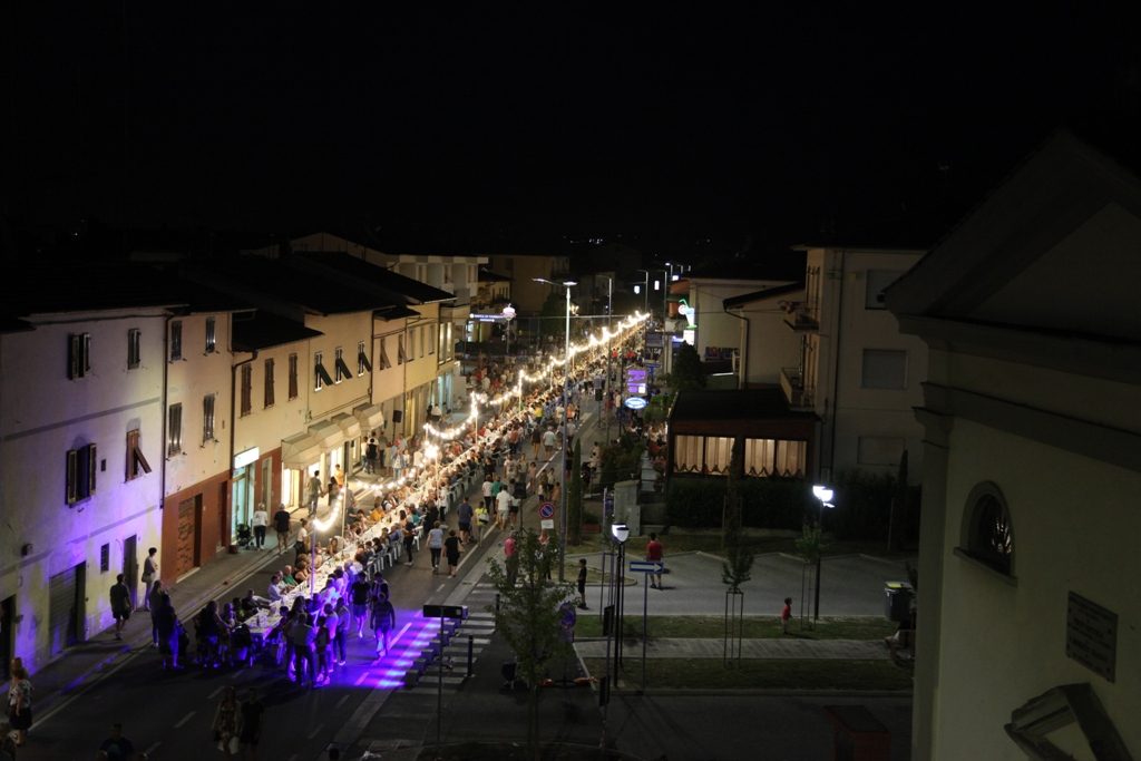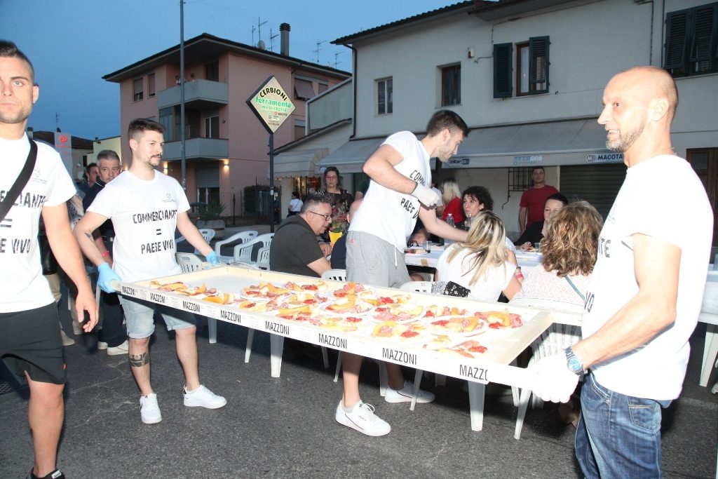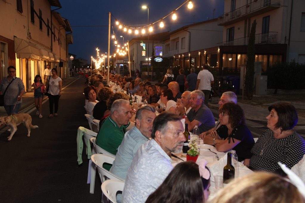 Da giorni era tutto esaurito e le aspettative per Pinocchio a Tavola non sono andate deluse: ben 740 persone hanno cenato nella enorme tavolata disposta lungo la Tosco Romagnola a San Miniato Basso, per il secondo giovedì di Pinocchio in Strada.