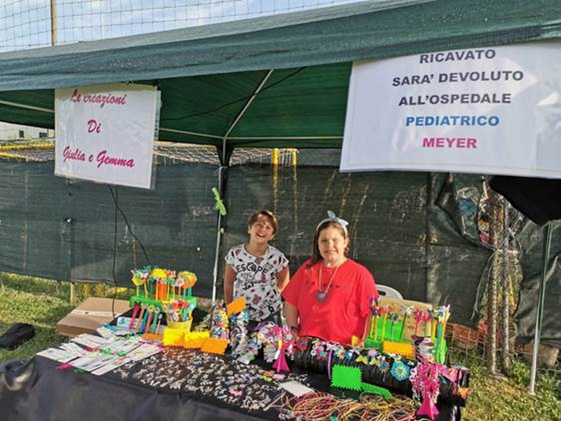 Un grande gesto da piccole mani. Giulia e Gemma, durante la festa 'Ponzano una sera d'estate' al campo sportivo della frazione empolese che si tiene oggi e domani, hanno organizzato un banco con una serie di oggetti creati da loro. Nulla di ciò che è sul banco è stato acquistato se non la materia prima. Le bambine hanno deciso di vendere le loro creazioni per donare il ricavato all'Ospedale pediatrico Meyer di Firenze. Hanno quindi messo alla prova la loro creatività per compiere un piccolo-grande gesto di solidarietà.