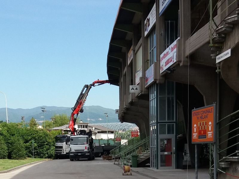 Procedono secondo i tempi programmati da Amministrazione e società sportiva, gli interventi di miglioramento sismico della tribuna ovest dello stadio comunale “Marcello Melani”. Iniziati i primi di giugno, i lavori riguardano principalmente le strutture portanti e la copertura, con interventi sulle travi e sugli ancoraggi, sui pilastri e sulle fondazioni. Nei prossimi giorni avranno inizio, inoltre, le valutazioni sulla vulnerabilità sismica della tribuna nord, la sostituzione delle sedute nella tribuna ovest e il potenziamento dell'impianto di illuminazione.