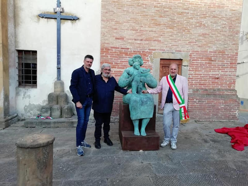 “Sono felice – dice il Sindaco -, di poter dotare il Centro Storico di Montaione di questa meravigliosa opera del maestro Franco Mauro Franchi. L’arte contemporanea come elemento di qualificazione del nostro capoluogo è una scelta intrapresa da alcuni anni da questa Amministrazione. Riteniamo che la bellezza dello spazio urbano sia un elemento decisivo per la qualità della vita di chi lo abita e di chi si trova a percorrerlo da visitatore forestiero; un fattore di accoglienza, di socialità positiva, che alimenta il senso di appartenenza e favorisce l’incontro. La scelta dell’artista, dell’opera e della sua collocazione non sono casuali. Franchi è uno degli autori più apprezzati e rappresentativi dell’arte toscana del nostro tempo. Questa Maternità, posta nella nostra piazza principale, di fronte alla Parrocchiale di San Regolo, instaura una corrispondenza ideale con la Madonna del Consiglio, il dipinto più importante della chiesa, risalente agli ultimi anni del XIII sec., raffigurante la Vergine in trono con bambino, attribuita al pittore di ambiente senese Guido di Graziano. Grazie ad essa Montaione sarà ancora di più uno dei Borghi più Belli d’Italia. Di questo sono grato al maestro Franchi e all’amico Filippo Lotti che ha reso possibile questo incontro”.