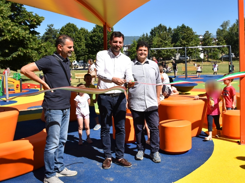 Al Parco della Rana giochi inclusivi e attrezzi per l’attività fisica: questa mattina il sindaco e l’assessore ai lavori pubblici Alessio Bartolomei hanno inaugurato le aree accompagnati dai bambini delle scuole dell’infanzia Parco Drago e Melograno.