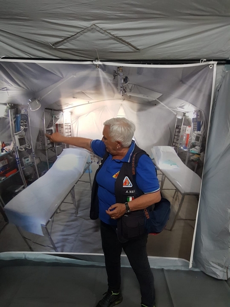 Una cerimonia semplice ed emotivamente coinvolgente, utile ad illustrare il livello di avanguardia di questo nuovo ospedale, reso possibile grazie al sostegno economico del Dipartimento della Protezione Civile e della Regione Toscana. Venti posti letto, differenziato nei reparti adulti, suddiviso tra uomini e donne, e pediatrico, l'ospedale funziona con 54 persone tra personale medico, infermieristico e addetto alla logistica. Un campo dotato di dispositivi per potabilizzare e riscaldare l'acqua, concentratori di ossigeno, inceneritore di rifiuti speciali e tutto quanto necessario per partire in appena sei, otto ore dall'alert dell'emergenza, anche grazie all'utilizzo di materiali leggerissimi e impermeabili, come le tende pneumatiche e ignifughe prodotte a Bientina. Semplicemente perfetta l'organizzazione dei volontari del G.C.U. di Pisa, nel giro di un'ora capaci di allestire la stanza di stabilizzazione, in appena tre ore la sala operatoria, qualunque sia lo scenario di intervento.