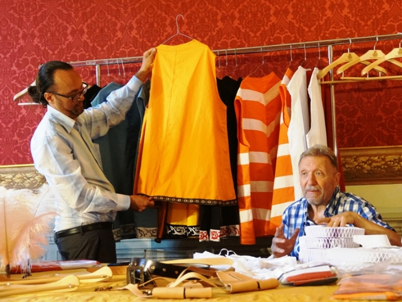“Oltre al restauro e alla manutenzione dei costumi – ha proseguito Pucciarelli - quelli più logori che non venivano più utilizzati e per cui si doveva ricorrere al noleggio, sono stati rifatti nuovi. 32 in tutto, sul modello di quelli originali del 1935. Quest’anno presentiamo in anteprima il nuovo vestito del Generale comandante di Tramontana, realizzato dalla sartoria Niccolao di Venezia con tessitura Bevilacqua e ricamo a mano macchina. Oltre ai vestiti, abbiamo realizzato i calzettoni di tamburini e alfieri di tutte e 12 le magistrature che non c’erano più, le calze per i paggi nobili del colore originale, decine di grandiglie che tanti costumi avevano ormai perso, i colli a lattuga dei cavalieri, una serie di cappelli per i tamburini. Gli Alfieri quest’anno escono con tutto il costume nella sua interezza, abito nuovo, calze e calzature. Per i Capitani di squadra abbiamo fatto le fuciacche, gli stivali e le piume (di struzzo), una serie di calzature per i personaggi nobili e anche per i valletti del Comune, per cui abbiamo rifatto anche il mazzocchio (cappello) provvisto della falsata e nuove calzamaglie. Inoltre piume nuove per i cavalli, con il montaggio di pennacchiera a quadriglia, accessori in cuoio come cinture e portaspade. Per finire, sono state fatte le nuove cotte dei combattenti di 24 tipologie. Un patrimonio così importante va protetto adeguatamente e per questo abbiamo investito anche nella conservazione trasporto dei vestiti, acquistando i nuovi contenitori-armadio su misura per cappelli, calzamaglie, vestiti, ecc, tutti in materiale ignifugo e antipioggia.”