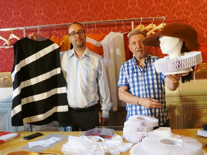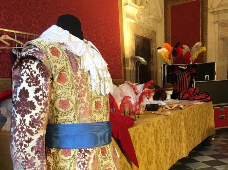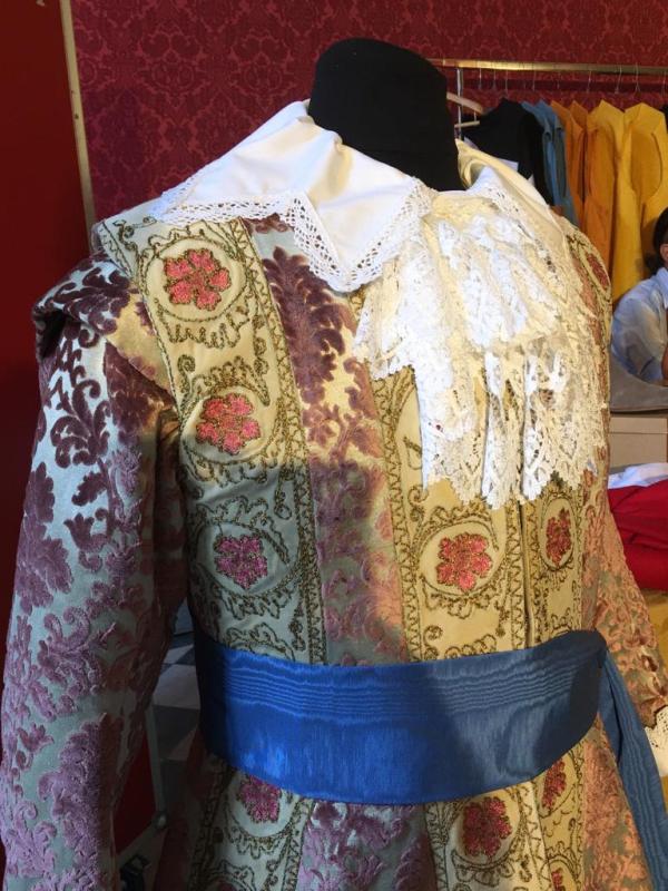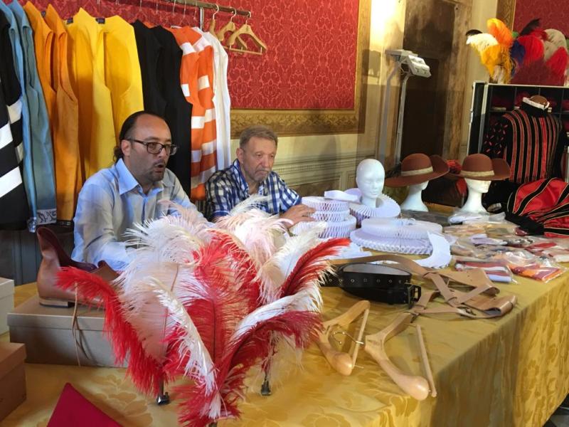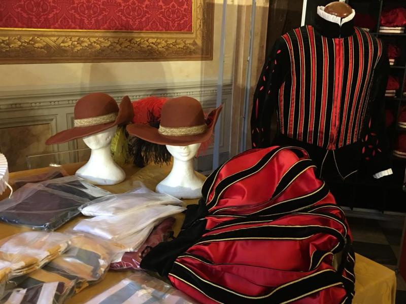 “Oltre al restauro e alla manutenzione dei costumi – ha proseguito Pucciarelli - quelli più logori che non venivano più utilizzati e per cui si doveva ricorrere al noleggio, sono stati rifatti nuovi. 32 in tutto, sul modello di quelli originali del 1935. Quest’anno presentiamo in anteprima il nuovo vestito del Generale comandante di Tramontana, realizzato dalla sartoria Niccolao di Venezia con tessitura Bevilacqua e ricamo a mano macchina. Oltre ai vestiti, abbiamo realizzato i calzettoni di tamburini e alfieri di tutte e 12 le magistrature che non c’erano più, le calze per i paggi nobili del colore originale, decine di grandiglie che tanti costumi avevano ormai perso, i colli a lattuga dei cavalieri, una serie di cappelli per i tamburini. Gli Alfieri quest’anno escono con tutto il costume nella sua interezza, abito nuovo, calze e calzature. Per i Capitani di squadra abbiamo fatto le fuciacche, gli stivali e le piume (di struzzo), una serie di calzature per i personaggi nobili e anche per i valletti del Comune, per cui abbiamo rifatto anche il mazzocchio (cappello) provvisto della falsata e nuove calzamaglie. Inoltre piume nuove per i cavalli, con il montaggio di pennacchiera a quadriglia, accessori in cuoio come cinture e portaspade. Per finire, sono state fatte le nuove cotte dei combattenti di 24 tipologie. Un patrimonio così importante va protetto adeguatamente e per questo abbiamo investito anche nella conservazione trasporto dei vestiti, acquistando i nuovi contenitori-armadio su misura per cappelli, calzamaglie, vestiti, ecc, tutti in materiale ignifugo e antipioggia.”