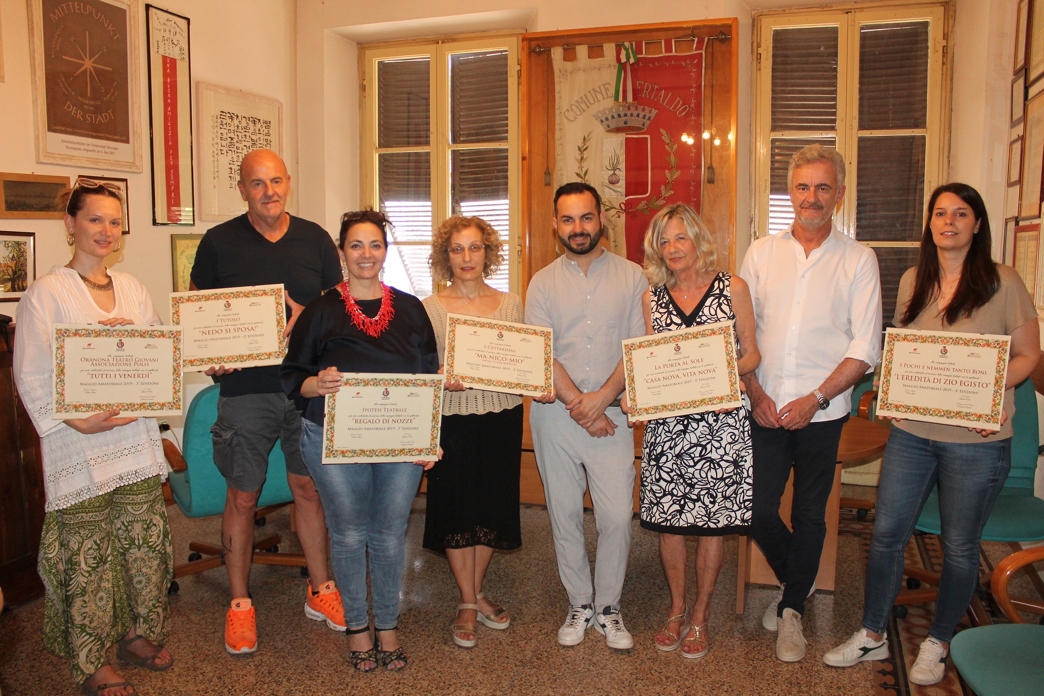 Oltre 1500 spettatori in totale, una media di 243 a sera in una sala che ne contiene al massimo 260, per 6 mercoledì consecutivi nei mesi di maggio e giugno. Questi i numeri che le sei pièce delle sei compagnie che hanno partecipato alla terza edizione del Maggio Amatoriale hanno fatto registrare quest’anno. Risultati in linea con i precedenti due anni per una manifestazione il cui successo è stato evidente da subito. Successo del quale si è parlato oggi durante la cerimonia di consegna degli attestati di partecipazione e ringraziamento per l’edizione 2019, di questa rassegna diventata appuntamento fisso del calendario culturale certaldese.