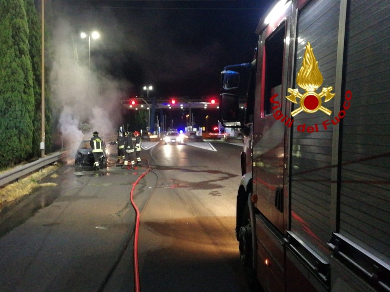 I Vigili del Fuoco di Prato, sono intervenuti alle ore 22:30 circa di ieri sera per l'incendio di una autovettura, nei pressi del casello autostradale della A11 di Prato ovest.