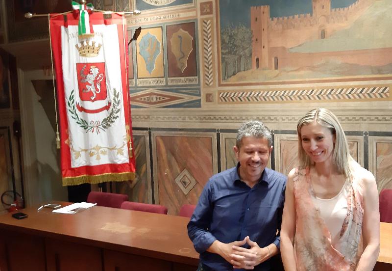 Simone Giglioli ha introdotto la nuova arrivata, proveniente da Ponte a Egola ("con la delega alle attività produttive" dedicato al polo conciario), affermando anche che lavorerà con lei a stretto contatto per la riqualificazione delle concerie dismesse proprio perché la delega all'urbanistica è in mano al primo cittadino.