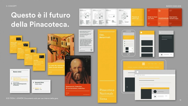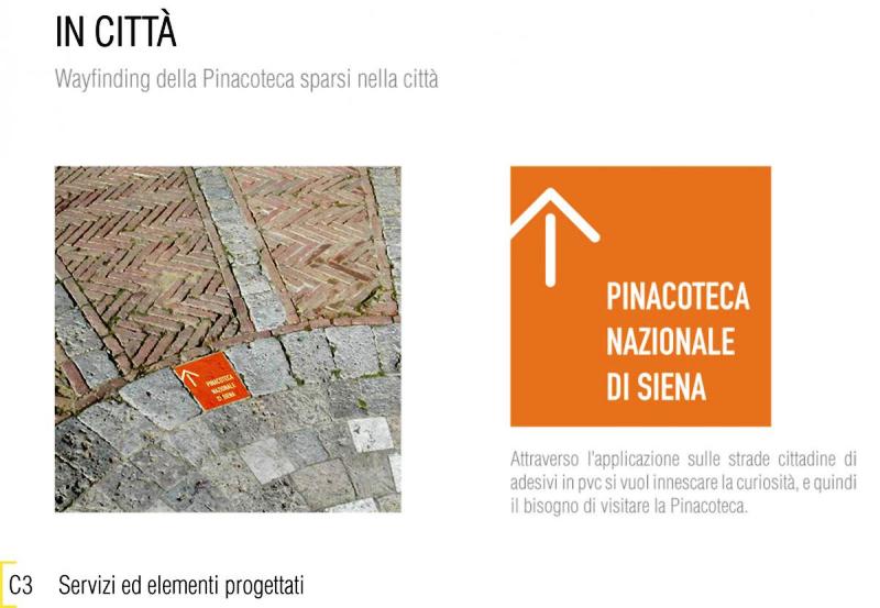 I tre progetti vincitori protagonisti della mostra sono di Ece Özdil con Un’esperienza autentica e contemporanea per la Pinacoteca Nazionale di Siena; Enrico Giori con Pinacoteca\21st; e il Gruppo MBR di Maria Monna, Francesca Roca, Giada Boromello e Vanessa Monna con Aperta Parentesi. I giovani designers hanno ideato una comunicazione integrata per la Pinacoteca, sviluppando una visual identity, materiali e brochures informative, didascalie e pannelli informativi interni e la proposta di un’inedita segnaletica urbana che guiderà fino al museo i visitatori da ogni punto della città.