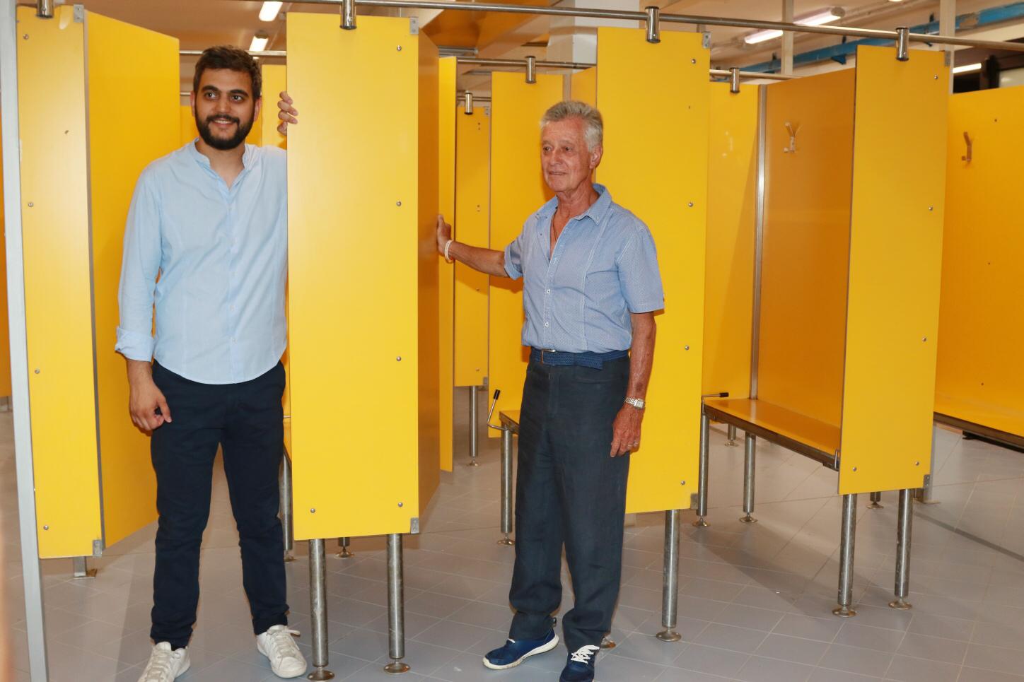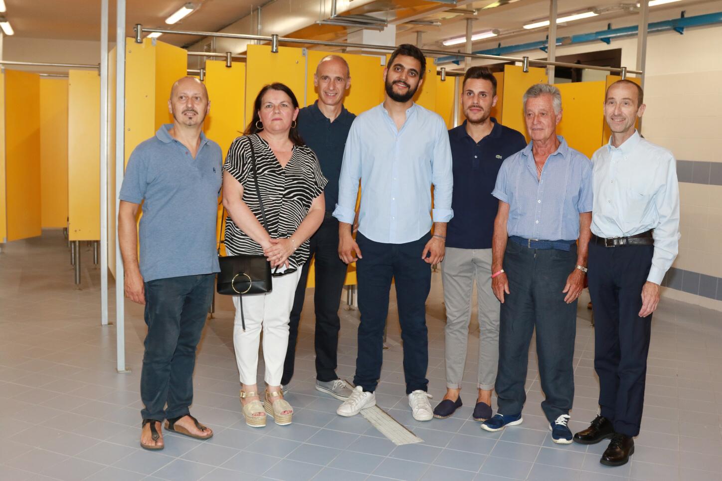 Inaugurati, ieri sera, i nuovi spogliatoi alla piscina di Bellariva. Il taglio del nastro con l'assessore allo sport Cosimo Guccione e il presidente della Rari Nantes Florentia Andrea Pieri.