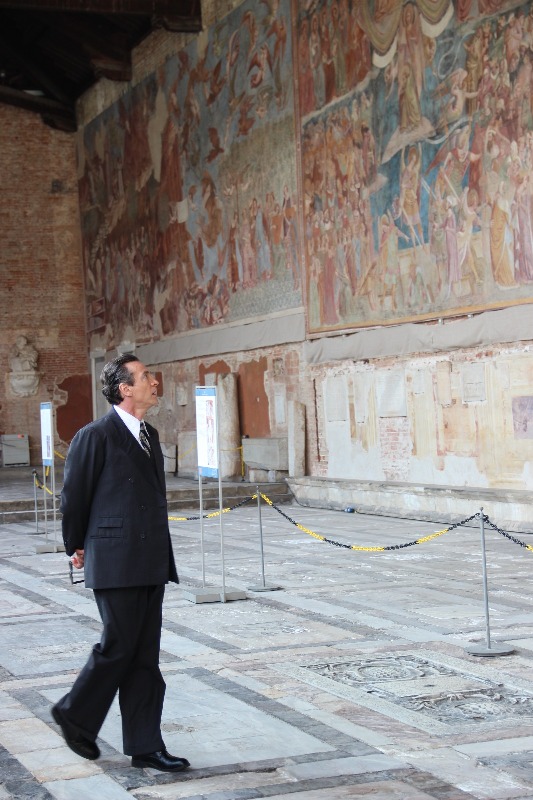 Gli attori Alessio Boni e Roberto Ciufoli, accompagnati dal produttore Massimiliano La Pegna, hanno fatto visita alla Piazza dei Miracoli, soffermandosi ad ammirare il Trionfo della morte di Buffalmacco in Camposanto Monumentale. L'attore Boni, in città per le riprese della fiction tv su Enrico Piaggio fondatore dell'omonima casa motociclistica, è rimasto colpito dai colori dell'affresco, oltre che dalla drammaticità delle scene ritratte. I restauratori presenti sul posto, lo hanno accompagnato nella visita, ripercorrendo la storia del salvataggio dell'affresco, dai danneggiamenti subiti a causa del bombardamento, fino al recente ricollocamento grazie alle più avanzate tecniche di restauro.