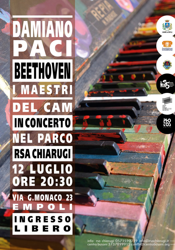 Primo appuntamento de “I Concerti alla Chiarugi nel luglio empolese” venerdì 12 luglio, alle ore 20.30, nel Giardino della RSA, con “Damiano Paci, pianoforte. Un saggio del sonatismo di Beethoven”. Tre sonate del compositore Ludwig van Beethoven eseguite da Damiano Paci, giovane pianista, compositore e insegnante presso il CAM, da cui provengono anche i musicisti che si esibiranno nel secondo evento in programma per venerdì 19 luglio, "Ma lo chiamavan Drago", alle ore 20.30, presso la RSA. Protagonisti del concerto alcuni brani immortali della musica leggera degli anni ’50 e ’60, passando per Renato Carosone e Fred Buscaglione, eseguiti da Elisa Prosperi, voce, Massimo Giannini, voce e percussioni, Sandro Tani, ai sassofoni, Tommaso Ceccatelli, alla chitarra elettrica e Mirco Capecchi al contrabbasso.