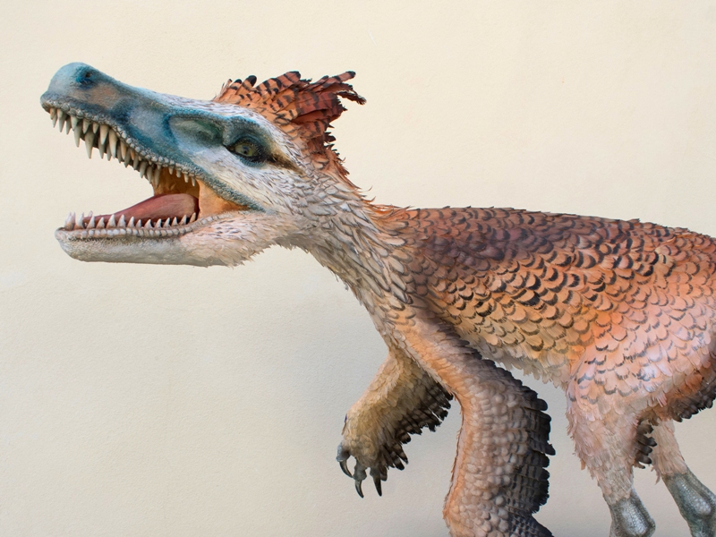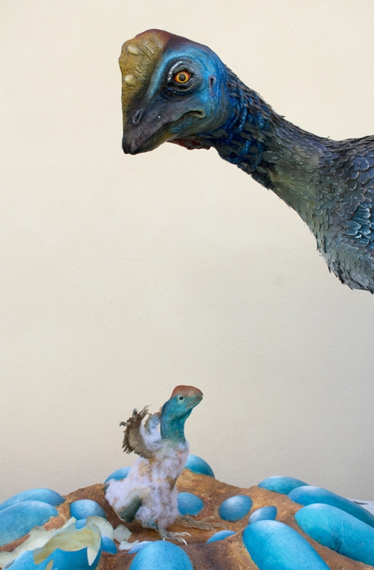 Nella prima parte, 19 modelli a grandezza naturale illustrano le varie tappe del cambiamento che, nel corso dei milioni di anni, ha visto i dinosauri trasformarsi da animali unicamente terrestri a signori dell’aria. Fra i modelli, oltre a tre esemplari di Archaeopteryx, si potranno ammirare il Velociraptor, coperto di penne, e l’Oviraptor, rappresentato come madre premurosa dei suoi piccoli.