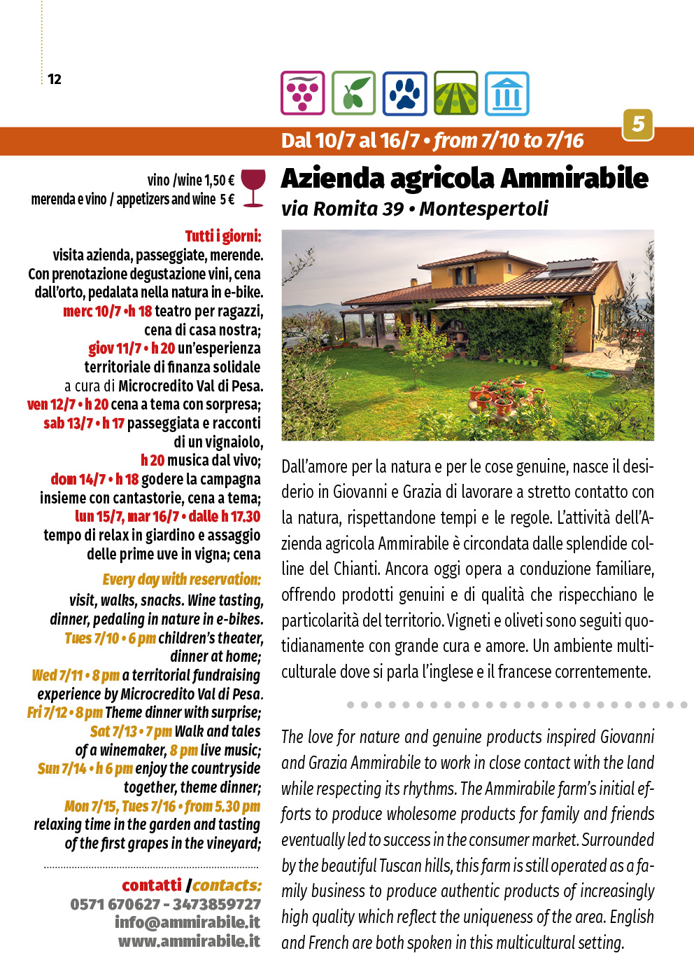 Questo il programma dal 10/7 al 16/7 - AZIENDA AGRICOLA AMMIRABILE via Romita 39, Montespertoli