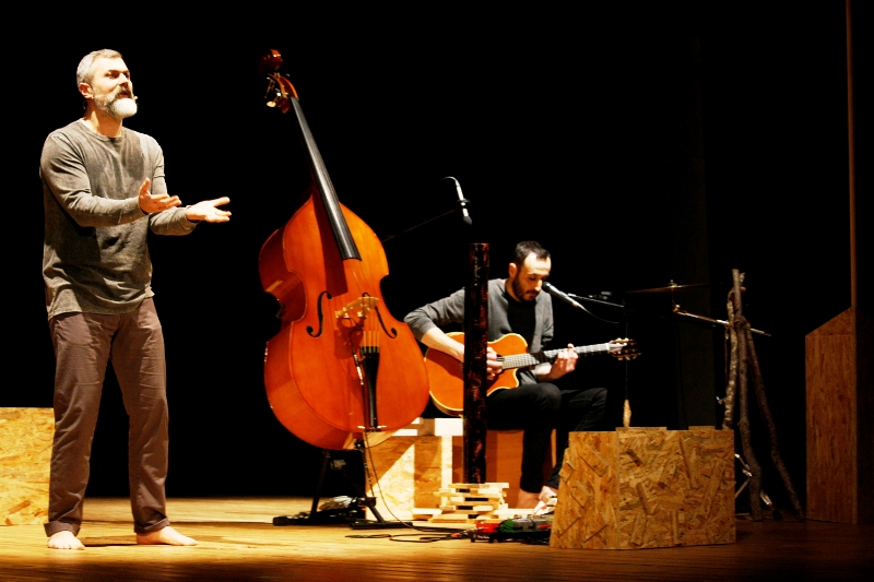 Un testo essenziale da cui gli artisti sono partiti per mettere in scena un insieme di suoni, musica, parole e gesti. Una storia che muove le coscienze. Una fiaba moderna per capire l’importanza del lavoro individuale e la potenza delle imprese, anche quelle più modeste, che iniziano sempre da un piccolo seme. L'adattamento teatrale di Bruni cerca di coniugare lo spirito ecologista del racconto al tema della ricerca interiore. Accanto all'attore due musicisti dalle diverse e importanti esperienze che suoneranno strumenti di legno e materiale di recupero, colonna sonora e scenografia mutante del racconto. Percussioni e melodie nasceranno dall'uso diverso di cortecce, piatti, lamiere, senza tralasciare l'uso del corpo che diventerà una vera e proprio batteria vivente. Da sottolineare le capacità straordinarie di Gigi Biolcati nell'arte della “Body percussion”.