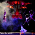 Creature e strutture bizzarre fanno capolino sul palco e una carezza si trasforma in una straordinaria storia d’amore che prende il volo fino a 20 metri d’altezza.