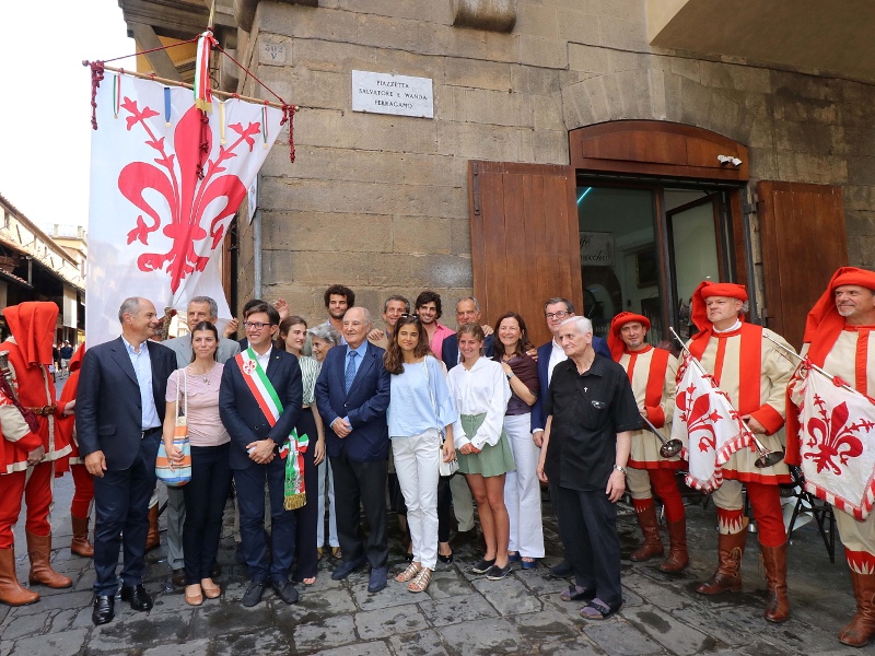 Tra Ponte Vecchio, via dei Bardi e via Guicciardini, proprio nel cuore di Firenze, vengono onorati Salvatore e Wanda Ferragamo: da oggi quest’area sarà intitolata ‘Piazzetta Salvatore e Wanda Ferragamo’.