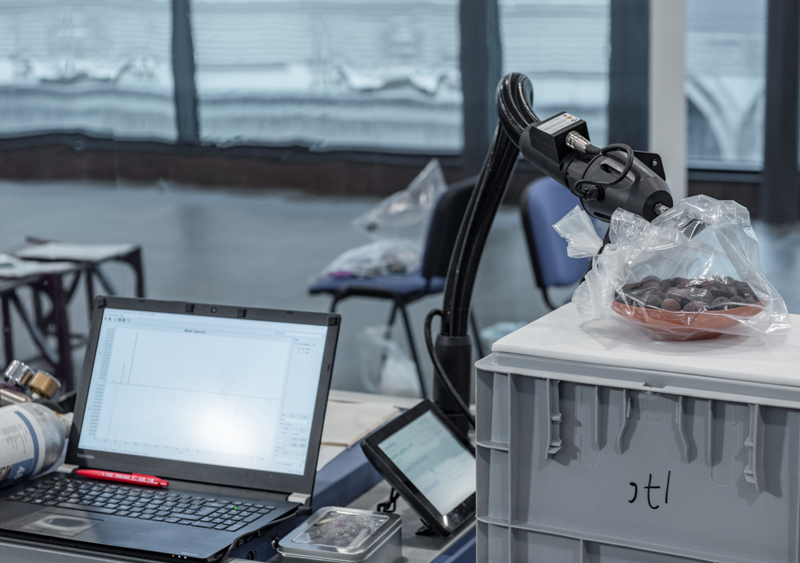 L’esame è stato eseguito con uno spettrometro di massa SIFT-MS (Selected Ion Flow Tube-Mass Spectrometry) trasportabile, un macchinario che solitamente viene impiegato in ambito medico per quantificare i metaboliti del respiro e che solo recentemente ha dimostrato la sua utilità anche nel campo dei beni culturali per eseguire indagini preservando l’integrità dei reperti.