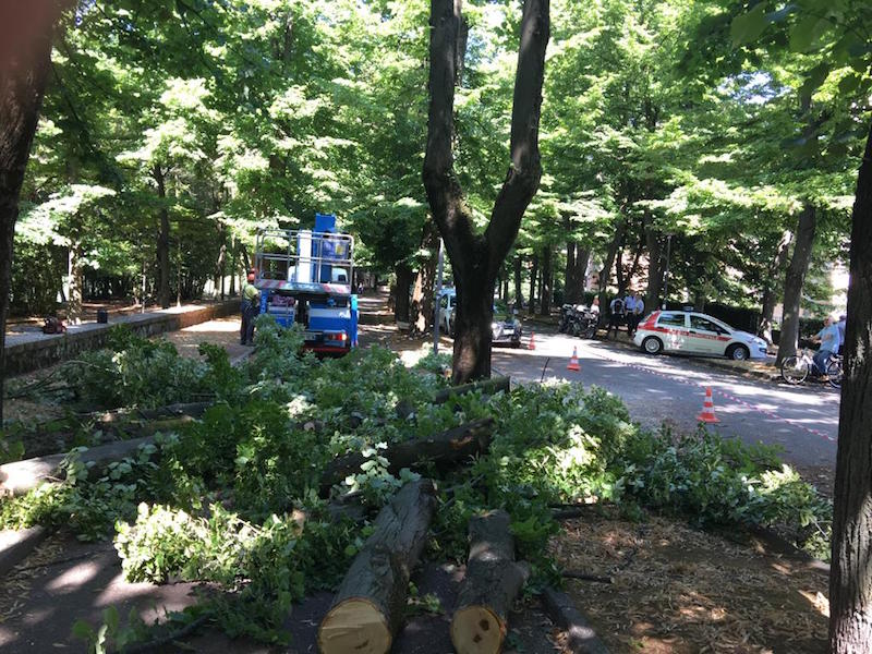 Abbattuto tiglio pericolante sul viale delle Piagge