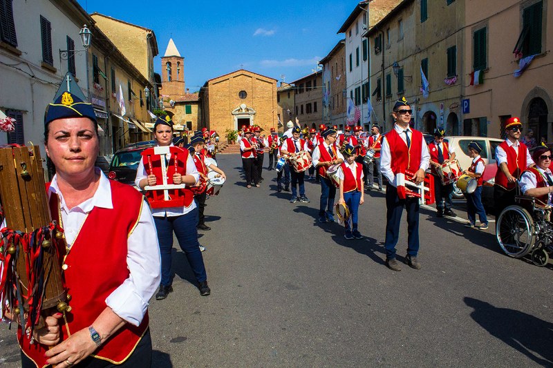 La giornata di festa inizierà alle 17.30 con la sfilata dei gruppi bandistici lungo le vie del centro di Palaia, che terminerà alle 19.00 con l'arrivo alla piazza del mercato. Dopo la cena sotto il loggiato della piazza, le bande si esibiranno a turno sul palco e sulla piazza.